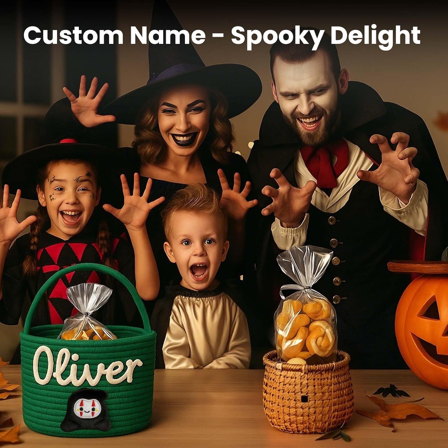 - 🎃 Personalized Halloween Fun – Create a one-of-a-kind trick-or-treat experience with a basket customized with your child’s name. Adorned with playful Halloween icons like pumpkins, cats, and ghosts, it adds festive charm to the spooky season.