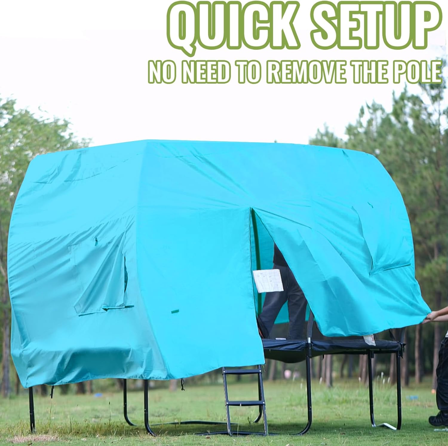- This trampoline tent offers quick assembly and easy installation. This trampoline tent includes video tutorials and detailed instructions for hassle-free setup. A top choice in trampoline accessories for creating a fun, safe, and functional trampoline experience.