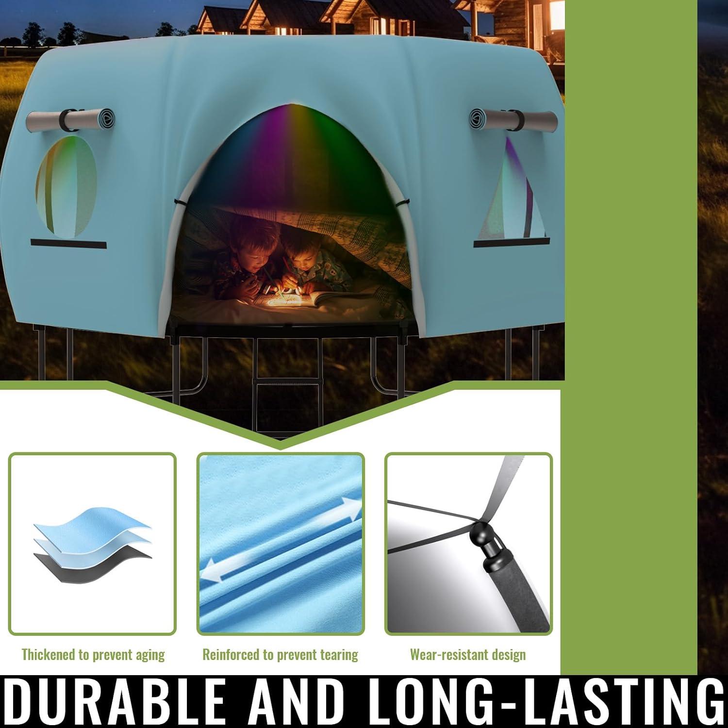 - More than a trampoline tent, it’s a shaded play area during the day and an comfort retreat at night. Use it as a trampoline shade tent or for outdoor activities like camping, picnics, and parties, making it an essential trampoline accessory for your backyard.