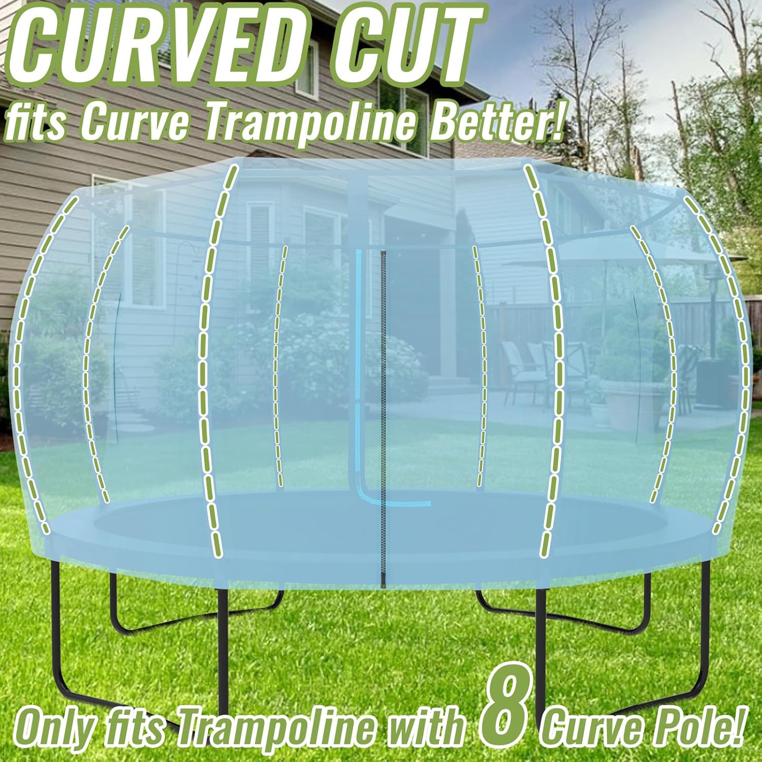 - Fits 12FT Round Trampoline, Poles Type: 8Pcs Curved Pole(NOT INCLUDE TRAMPOLINE)